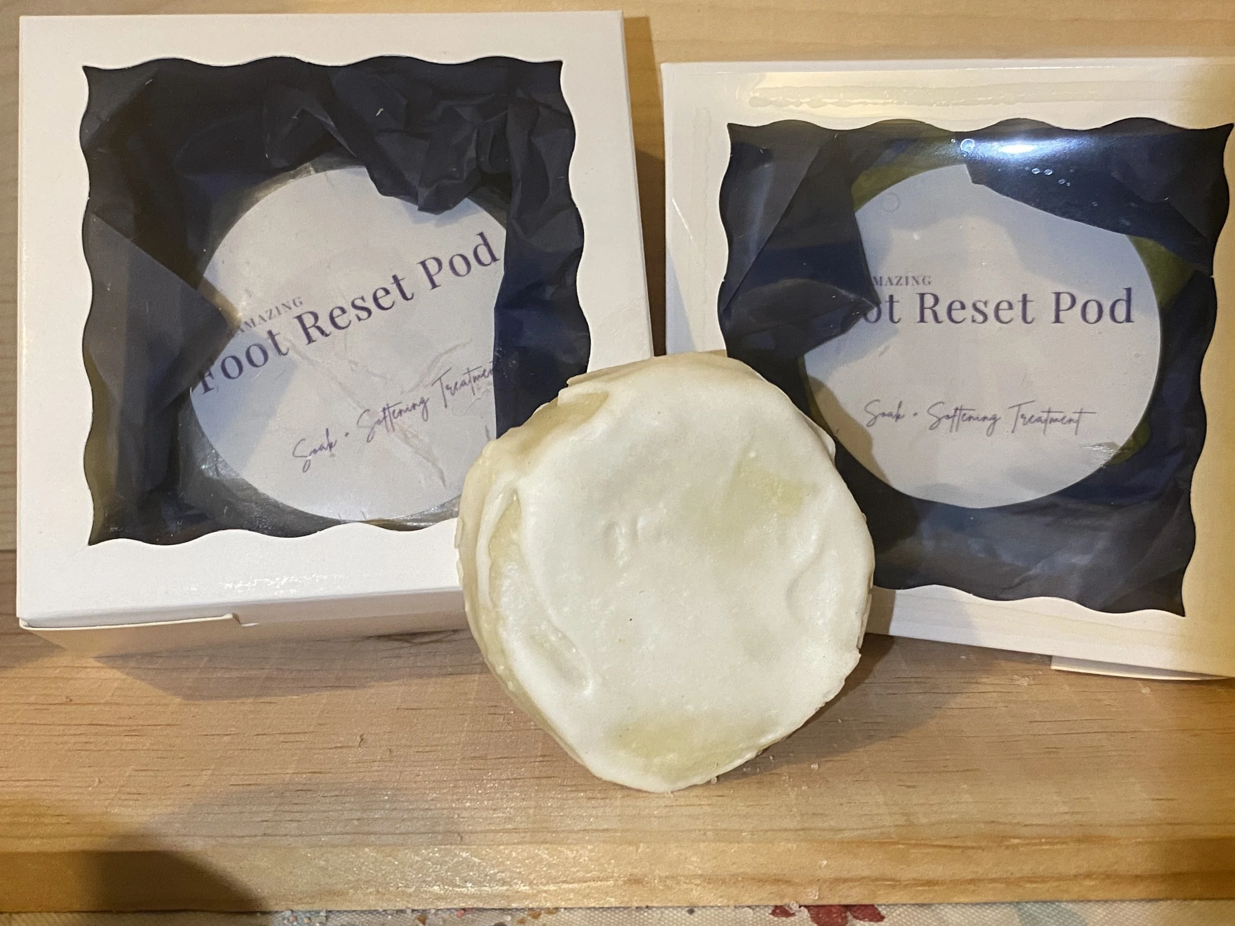 A concentrated foot soak pod that melts into warm water to deeply soften and refresh tired feet.